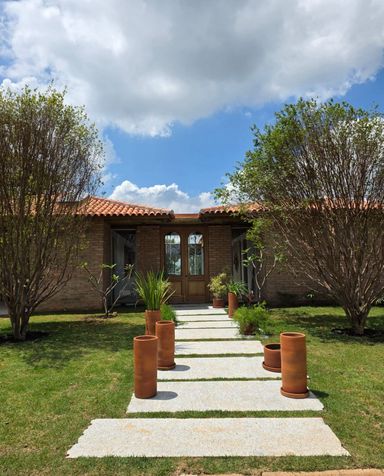 - Casa revestida externamente em tijolinho, unindo charme e durabilidade
