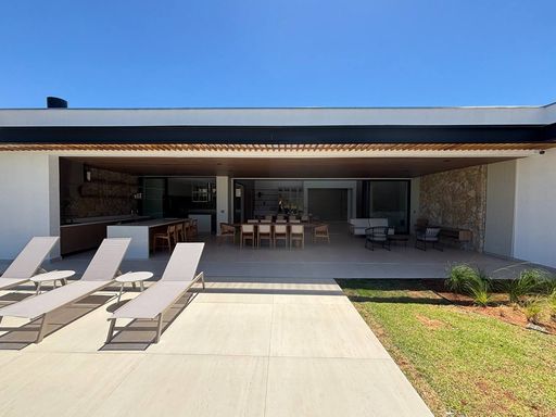 Assinada pelo escritório MR Arquitetura, com interiores da designer Fernanda Patrão e paisagismo de Roberto Riscalla, a casa foi projetada para oferecer integração total entre os ambientes internos e externos, combinando sofisticação, funcionalidade e bem-estar.