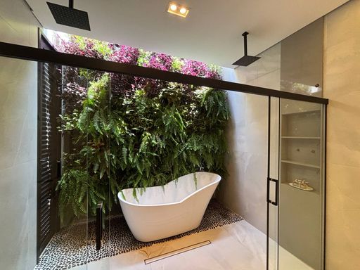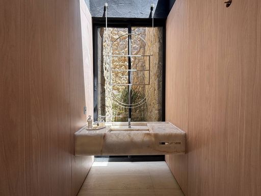 - Lavabo com jardim privativo e pedra de ônix iluminada