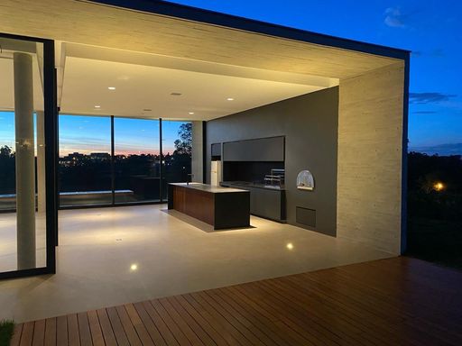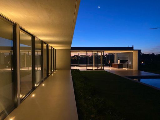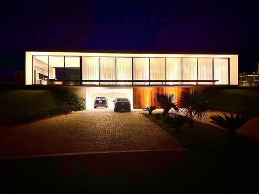 Com 760 m² de área construída em um terreno de 2.240 m², esta residência impressiona pelo projeto contemporâneo, integração entre os ambientes e conexão visual com o jardim e as áreas de lazer.