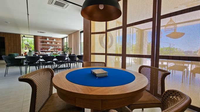- Ambientes integrados e iluminados: sala de estar, sala de jantar e sala de TV