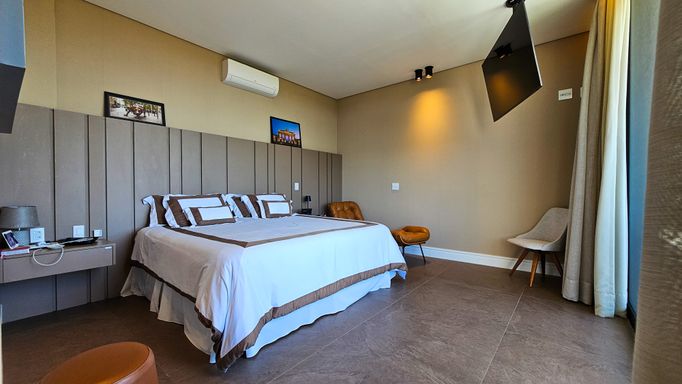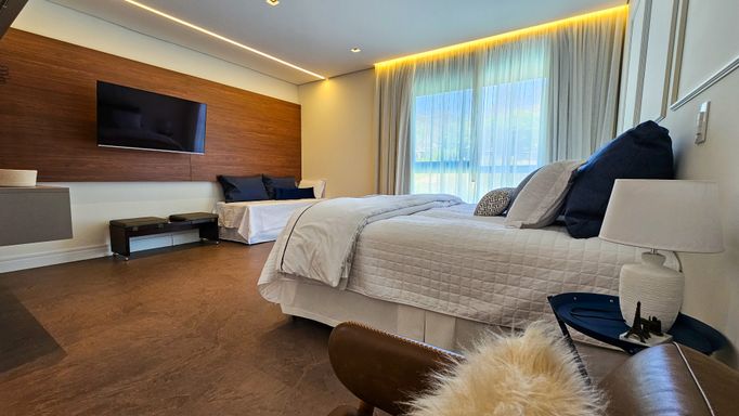 - 6 suítes espaçosas, sendo 2 suítes máster com closet e banheiros independentes (Sr. e Sra.)