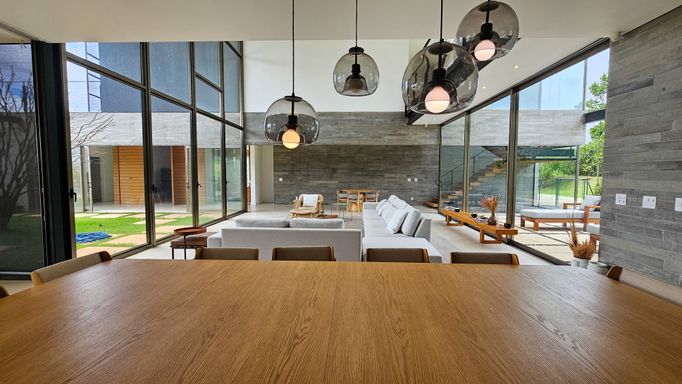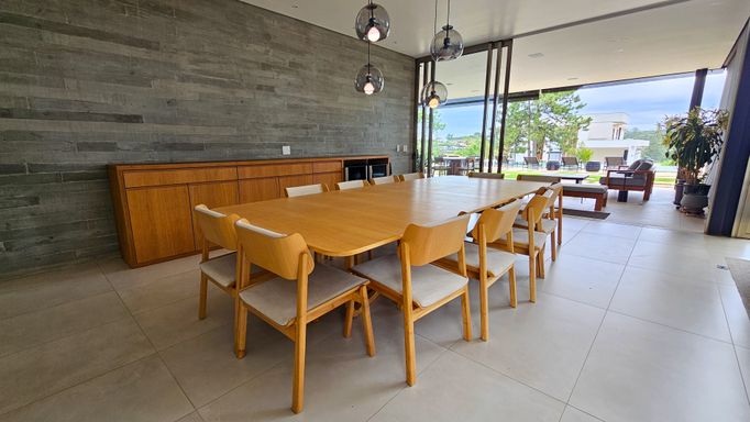 Com impressionantes 927 m² de área construída em um terreno de 2.161 m², esta residência se destaca pela excelente localização central no condomínio, amplos espaços e infraestrutura completa de lazer. O projeto valoriza conforto, privacidade e integração entre os ambientes, ideal para quem busca viver com exclusividade em um dos condomínios mais renomados do interior paulista.
